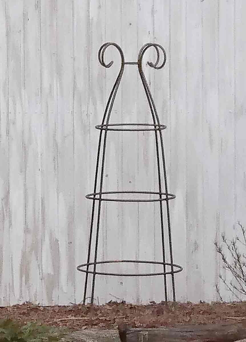 Высокая и узкая стальная клетка-опора для цветов. Удобная для формирования больших кустов.