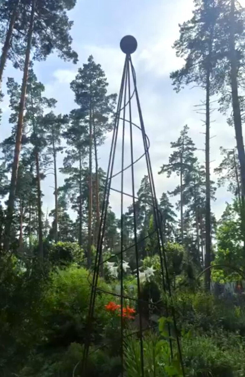 Обелиск - опора для плетистых растений. Полная высота 200 см, но можно сделать любую. Изготовлен из стальных прутков Д12мм. Зимой можно наряжать как елку :)