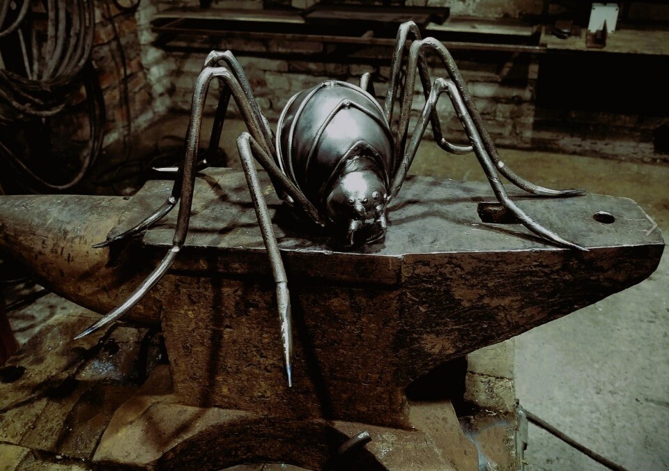 Довольно крупный (40 см) кованый паук. Для красоты или забавы ради. Сталь, ручная ковка, точное повторение невозможно - паучок будет каждый раз немного другим.