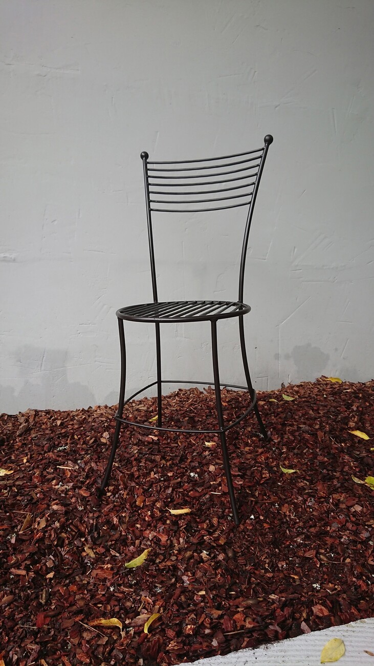 Подставка для горшков в форме стула . Сидеть на ней тоже можно, он выдерживает 200 кг. Изготовлена из полнотелых железных прутков 10 и 6,5 мм в диметре. Целносварной, прослужит долго! Диаметр сидения 40 см.