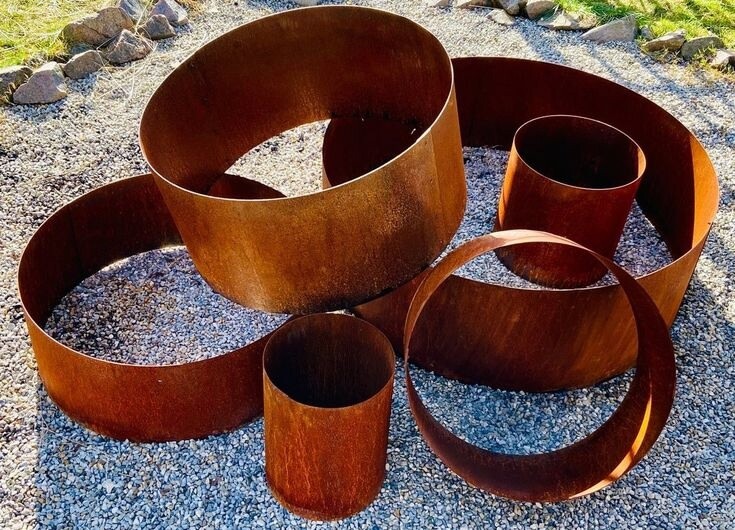 Стальное кольцо широко используется в ландшафтном дизайне. Сортовая сталь 4 мм. В настоящий момент мы предлагаем несколько вариантов диаметров и без отделки. По индивидуальным заказам диаметр может быть любой до 6 м.