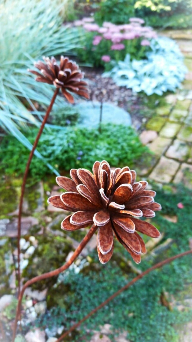 Диаметр цветка - 10-12 см, материал - сталь 2 мм, высота 120 см, материал ножки - стальной пруток 6 мм. Предлагается с Рустед отделкой в стиле "Кортен".