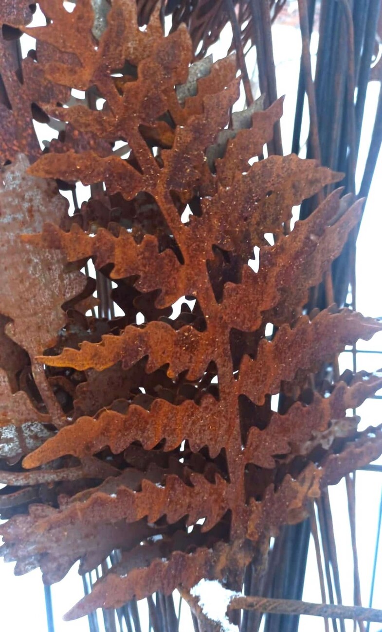 Доисторический папоротник. Изготовлен из стали 2 мм, предлагается в трех размерах. Ножка - сталь диаметром 6 мм. Отделка - "ржавый метал". Можно приобрести комплект из двух разных размеров. На фото для наглядности представлен вариант "комплект всех размеров". Обратите внимание, что вариант 1 и 2 - продаются поштучно.