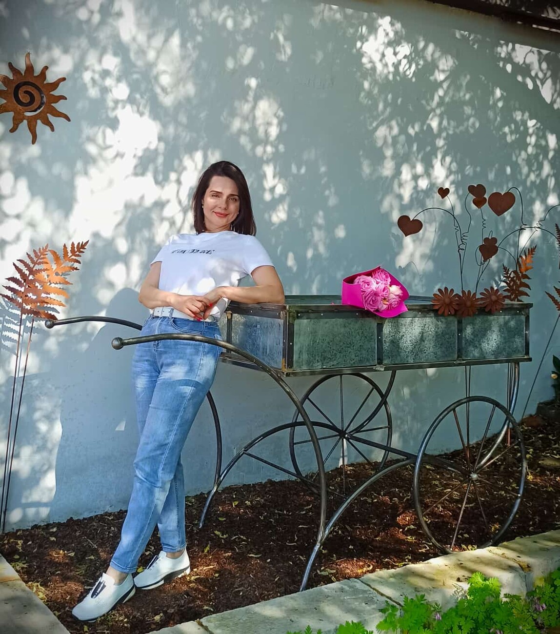 Декоративная, но полнофунциональная "тележка цветочницы". Высота - 100 см, длинна 120 см + ручки, ширина 80 см. Глубина ящика - 25 см.